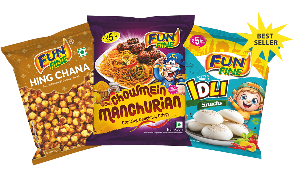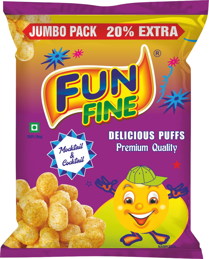 From crispy chips to spicy bhujia and tangy pasta snacks, Fun Fine makes every bite a blast of flavor! Deliciously crunchy, always fun, and made to munch anytime, anywhere.